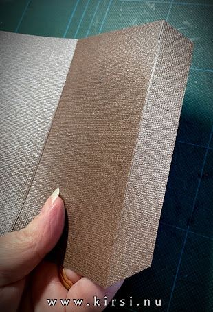 I glued on first 3 panels before gluing together the small cubes. You can se I cut an angle in the corners of the short piece. Makes it "disappear" in the backgrund.